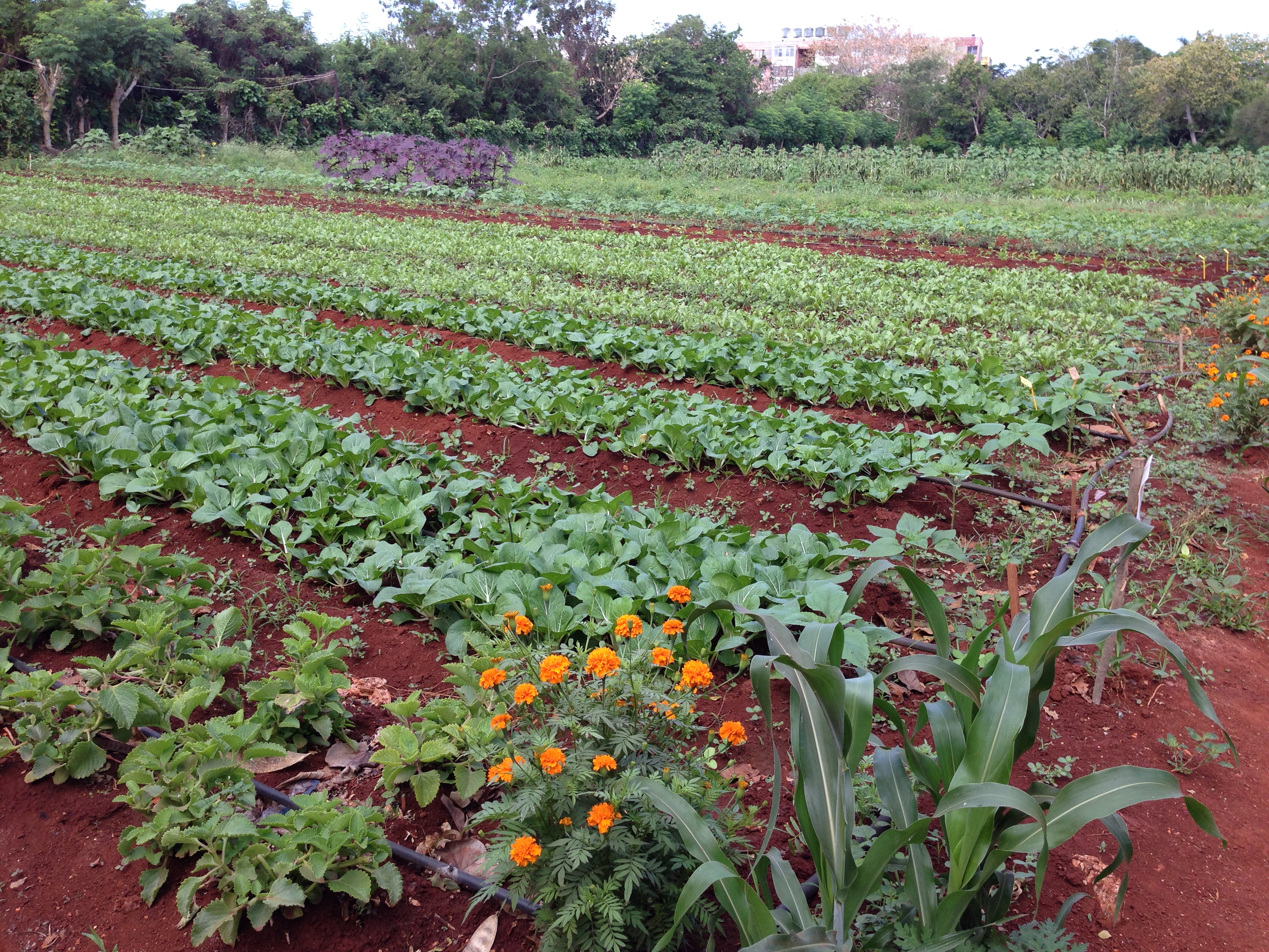 Alamar is a cooperative venture that was founded in the early 1990’s, largely in part due to the fall of the former Soviet Union and the loss of subsidies to the Cuban government. Originally a vacant lot, Alamar started with 5 people farming about 800 square meters of land from the Cuban Ministry of Agriculture and supported by multiple non-governmental organizations. Today it is about 10 hectares – about 25 acres and created 170 jobs in the community that it is located in. Alamar primarily produces vegetables but also ornamental plants, fruit trees, medicinal, and spiritual-based plants. It also manufactures a modicum of herbs and spices from the plants grown on the farm, and operates an on-site produce market. Farm products are also sold at local farmers markets, schools, workplaces, and hospitals.