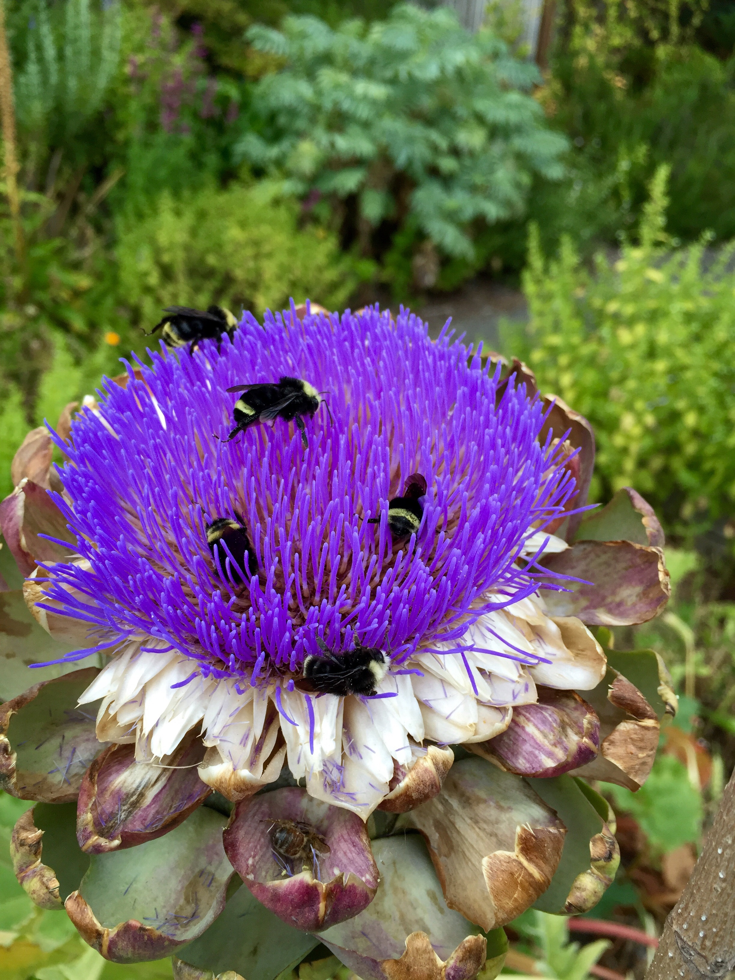 These Bumble Bees were hanging out on this artichoke flower. They seemed “sleepy” because it wasn’t very warm out today.